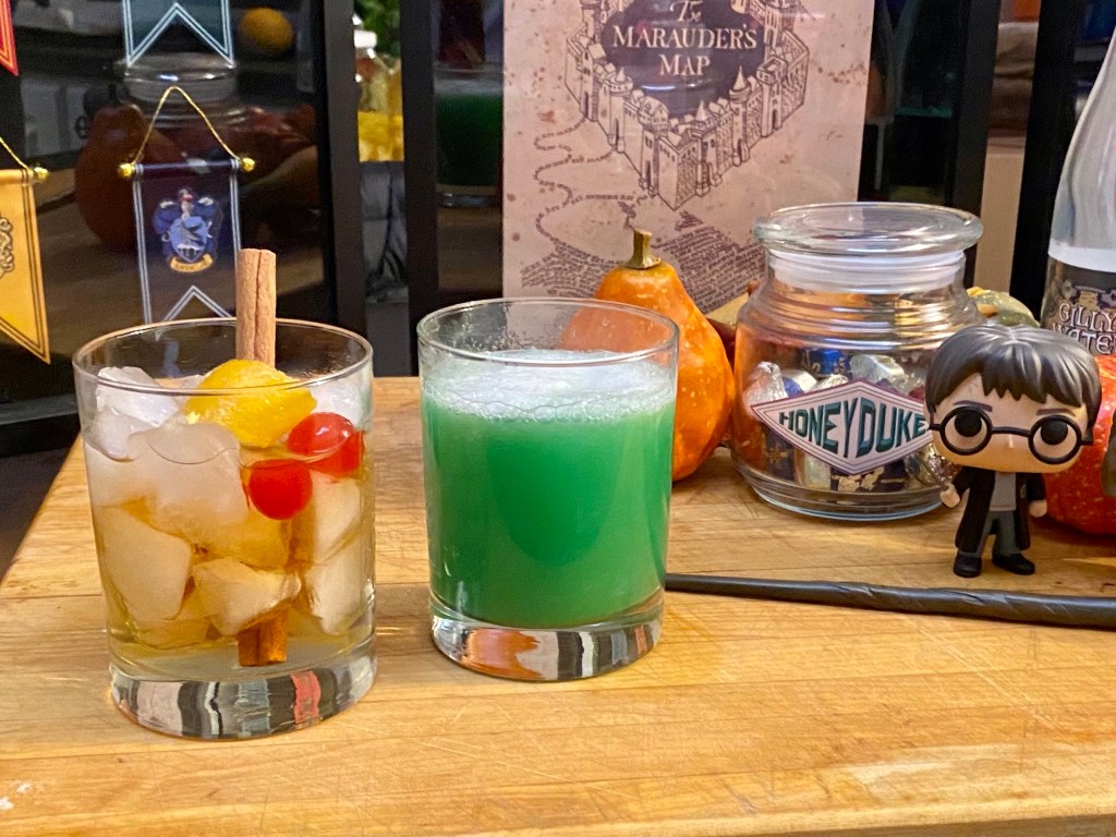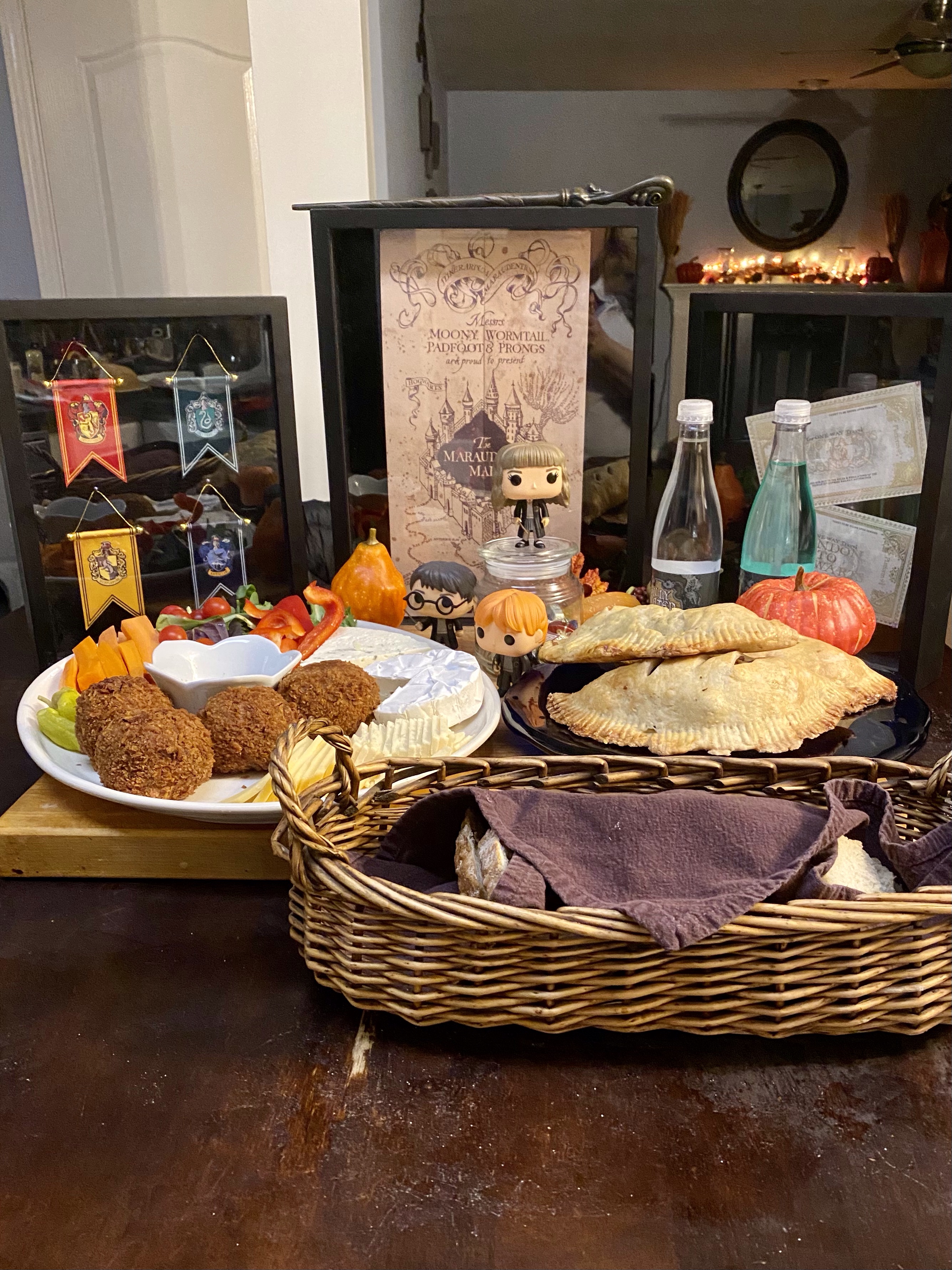 Our Hogsmeade dinner was a delight! While I had low expectations for a British-themed dinner that did not include fish and chips, we all thoroughly enjoyed the meal. Our cocktails included Polyjuice Potion and a Firewhiskey Old Fashioned. Dinner was cheese, crudites, and Scotch eggs served alongside beef pasties. It was too hard to choose just one dessert, so we had cauldron cakes, pumpkin pasties, and butterscotch ice cream with a chocolate, peanut butter, and pretzel mix in. While hot butterbeer was originally on the menu, we were too stuffed to make it. I’m seeing a cold February movie night with popcorn and a mug of hot butterbeer in our future!